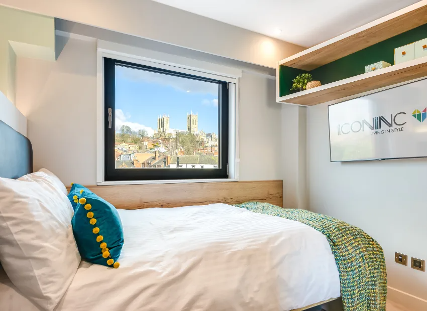 The Neo apartment is perfectly designed with student living in mind. It offers a unique studio space that is ideal for studying and relaxing, and comes complete with double bed, large flat screen TV, kitchen, desk and en-suite.