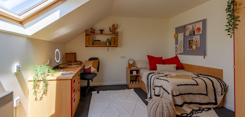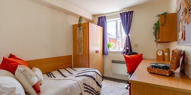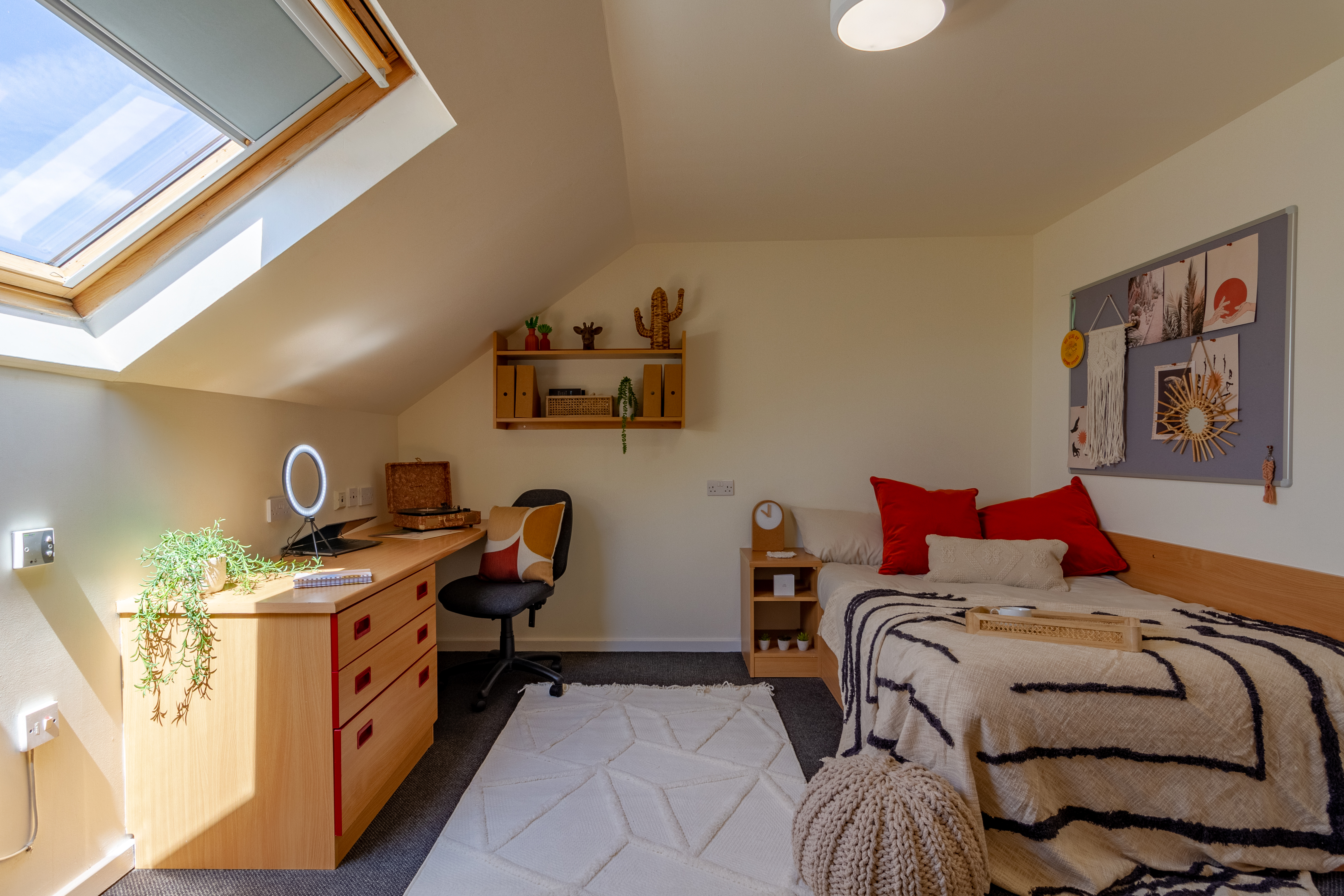 Share a kitchen/dining area with 4 other students while enjoying the privacy of your own room. Rooms come complete with a single bed, en-suite bathroom, study desk and chair, chest of drawers and plenty of storage space. The kitchen/dining area comes complete with a 4 ring ceramic hob, single oven, fridge-freezer and dining table.