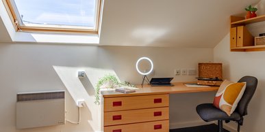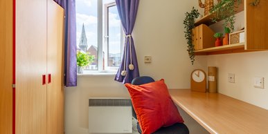 Enjoy a Premium En-suite room with a 3/4 bed, en-suite bathroom, study desk and chair, wardrobe, chest of drawers and plenty of storage space. These rooms are located within a shared flat of 4 or 5 people, with a shared kitchen/dining area complete with all you need, plus a widescreen TV. Premium En-suites vary from 28-30 sqm. The kitchen/dining area comes complete with a 4 ring ceramic hob, single oven, fridge-freezer and dining table.