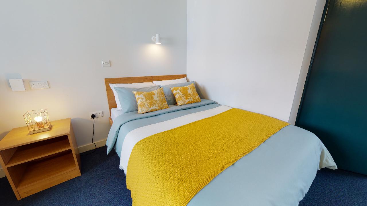 PAVI300-031125If you’re looking for more space, these rooms give you extra with more storage and more room to manoeuvre. These big rooms come with your own private bathroom and small double bed, plus study desk and chair and lots of storage. A communal kitchen and living space with TV is shared with your flatmates, giving you that shared social experience too.