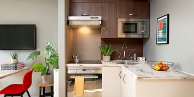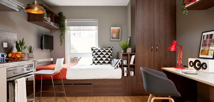Our studios are all contemporary in design and include the latest technology. They each come with their own en-suite bathroom, private kitchen area and plenty of space for you to study or relax.