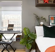 Premier studio with private kitchen and en-suite bathroom. (Range of room layouts available - images are indicative). 17.5m2 average size.