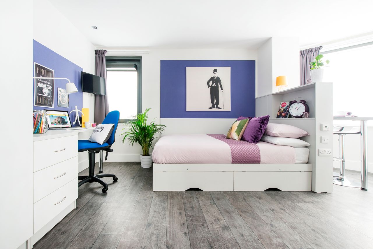 Live the high life. You’ll have a large self-contained studio apartment, but it is still within a 4 or 5 bedroom flat, so you can choose to socialise with your new friends in the communal kitchen or dine by yourself in your own flat. Perfect for all moods and occasions! These rooms are approximately 25m2. Want to share? Our Deluxe Studios are ideal for couples. Dual Occupancy contracts are available at an extra £25 per week.