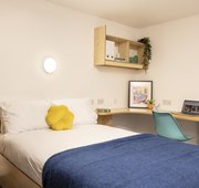 If you're looking for something a little more luxurious as a student, one of our Platinum en-suite rooms could be ideal. Enjoy 26m of space to yourself; with comfy double bed, study area and enough storage space for your essentials - you'll feel at home in no time! When you're not working your socks off or having a well-deserved lie in, you can get to know your new friends in the shared kitchen.