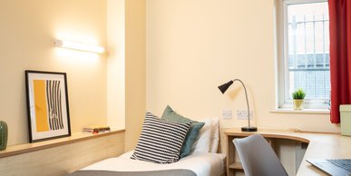 Experience the real university lifestyle in one of our spacious Silver Rooms at Albert Court, Liverpool. With useful study area, lots of shelves to store your textbooks (read: photos of the family cat) and comfortable 3/4 bed, you'll look forward to coming home after a long seminar. Whether you're doing a last-minute assignment or practising your iconic dance moves for Freshers' Week, your room has everything you need for a great student experience. Become besties with your flatmates in the shared kitchen and start making memories!