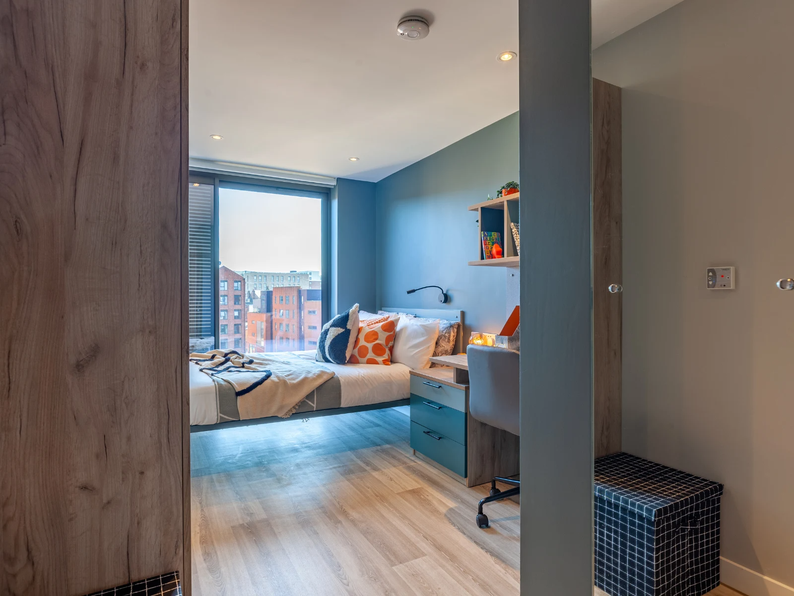 With outstanding views of some of the citys most iconic landmarks such as the Cathedrals, the famous Liver Buildings, Radio City Tower and the Waterfront to name a few, Enjoy luxury student living and your own private space with our Premium En Suite room. Measuring approx 12.5sqm, your new room is furnished with a private bathroom, practical desk and super soft bed to sink into after a long day of lectures. It even comes with ample storage space, a full-length mirror and great views from being on floors 5-8!