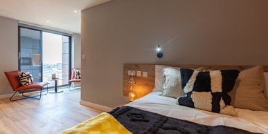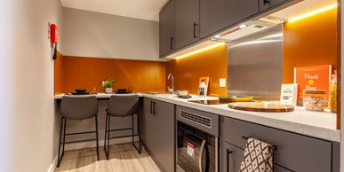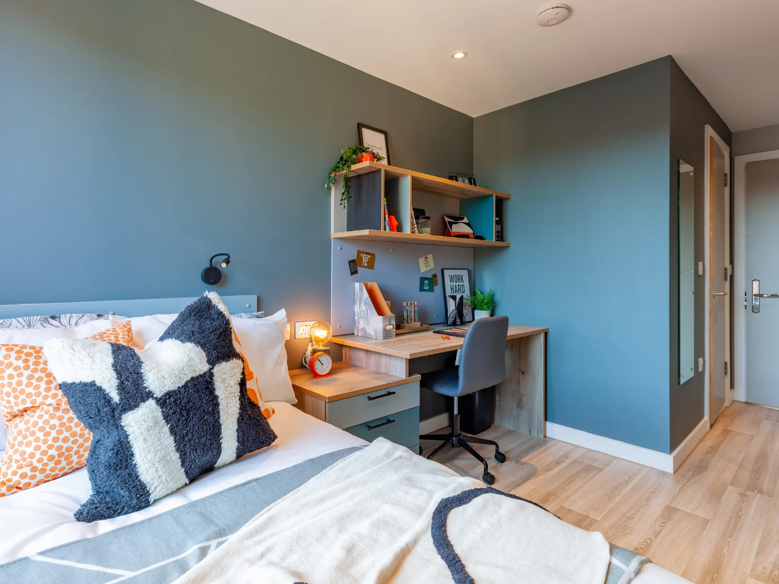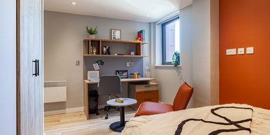Enjoy luxury student living and your own private space with our Premium Plus Studio room. Measuring approx 20sqm, your new room is furnished with a private bathroom, kitchenette, a practical desk and super soft bed to sink into after a long day of lectures. It even comes with ample storage space and a full-length mirror.