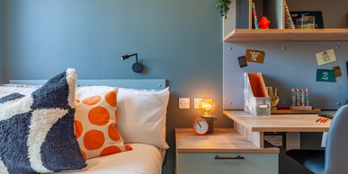 Your new room is furnished with a private bathroom, practical desk and super soft bed to sink into after a long day of lectures. It even comes with ample storage space and a full-length mirror.