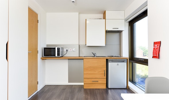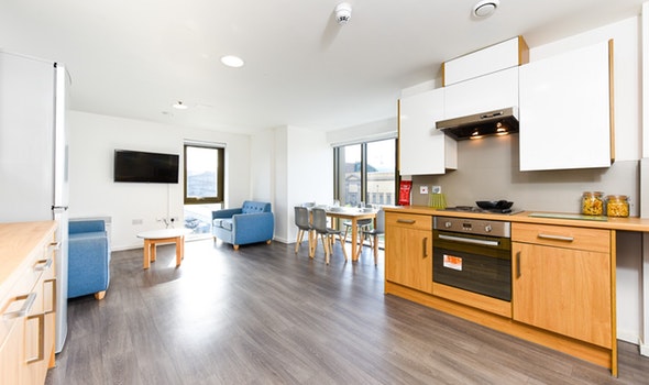 Communal kitchen and living space with up to 5 en-suite rooms per flat