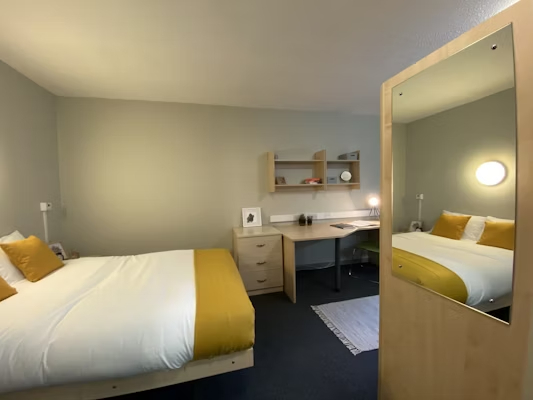 Communal kitchen and living space with up to 6 en-suite rooms per flat Located on ground floor Small double bed Underbed storage, wardrobe, personal study space with desk and chair Approximately 13.2m²