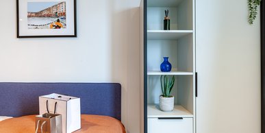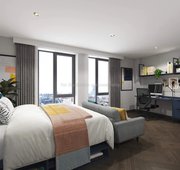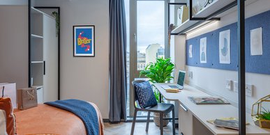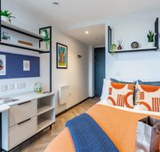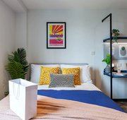 Our Silver Club Plus rooms measuring 14 sqm are located on floors 4-8 with great city views ensuring you’ll live a life of luxury whilst at university. Within your private space is a small double bed with overhead storage, a wardrobe, full length mirror, study desk and chair, a pinboard and your own bathroom with a shower and WC. If all this wasn’t enough, you’ll also have a club lounge area to spend time with your friends. The shared kitchen and living area is a dream, with a dining table and bar stools, a coffee table, widescreen LED TV, sofas and much more. Whilst living at Limelight you can make the most of our first class amenities like our state-of-the-art gym or games room which features a pool table and a Flight Club style darts booth.