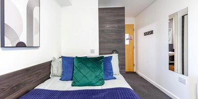 Paddington Park House student accommodation has spacious rooms that are well lit with natural light. Each room is equipped with a bed, desk, wardrobe, mirror, TV, private bathroom and a fully equipped shared kitchen. All rooms at Paddington Park House Liverpool can also be rented on a weekly basis.