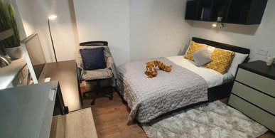 Plato House Liverpool has different room categories for students to choose from depending on their budget and comfort, such as Deluxe Studio, Premier Studio and Premier Luxe Studio with comfortable beds and en-suite bathrooms, kitchenette, central air conditioning and heating, a desk for studying and 100 Mbps WiFi. The living areas are spacious, fully furnished and equipped with quality amenities.