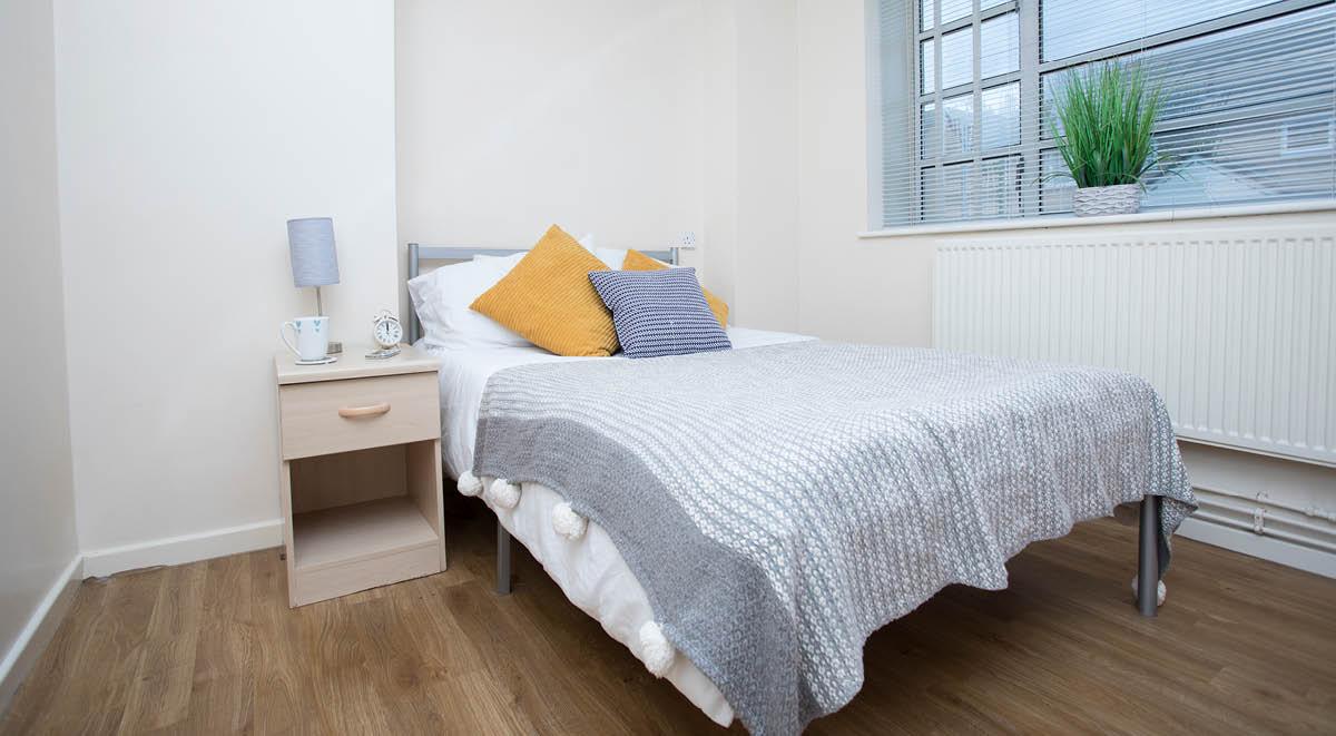 Interested in our Gold XL Rooms? These rooms are furnished with a ¾ double bed, wardrobe, sink with vanity unit, desk and study chair. You’ll have access to a shared bathroom, communal kitchen and living space. Depending on the flat you book, you could have a room with extra floor space (6/7bed flat) or a 3-bed flat with a large communal kitchen- perfect for those who want to socialise with flatmates.