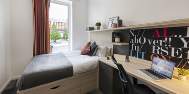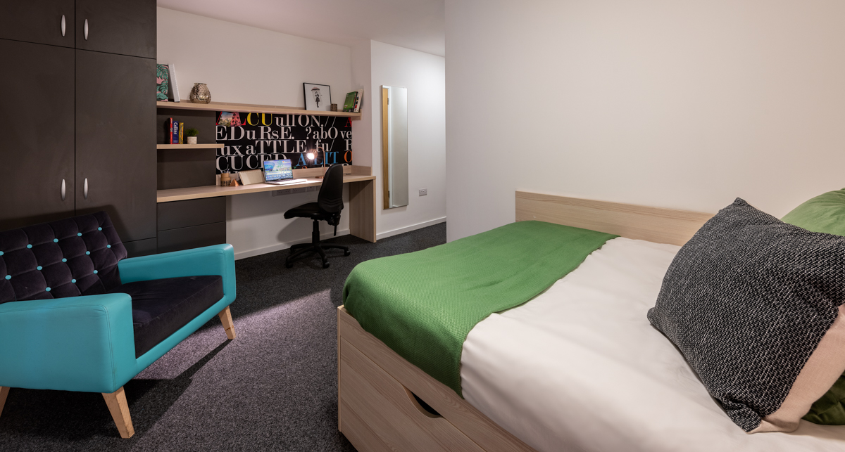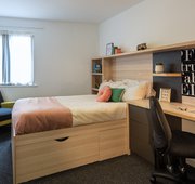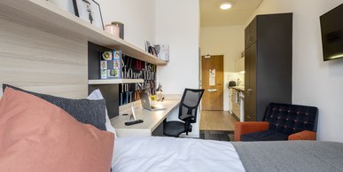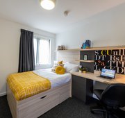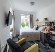 Enjoy a shared kitchen and lounge area, equipped with fridge/freezer, microwave, TV and other essentials. When you need peace and quiet, the large (average 23.4m2) bedroom includes stylish fitted furniture, a large bed and contemporary en-suite shower room. All you need to bring is bedding, towels and kitchen utensils to add a personal feel.