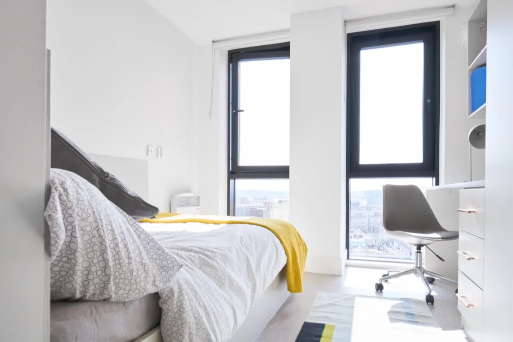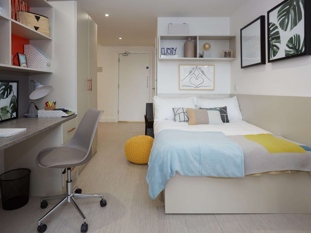 Still treated to the en suite shower room, small double bed, oodles of storage, fitted kitchen and study area but now with more clearance to enjoy them. More than enough room for two to share and the price doesnt change. Perfect for couples to share as we dont charge any additional fees.