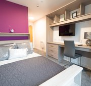 Smaller Room, Regular Furniture, Your standard room comes with a private en-suite, study desk and chair plus spacious shared kitchen and living area. Furthermore, take advantage of the ultra-fast Wi-Fi, flat screen TV and clever storage solutions. Standard rooms are smaller versions of our Premium room with a standard furniture pack and mattress.