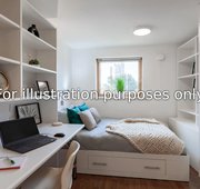 The Ruby Studio is a private studio of approximate 16m2 in size. The room features all modern amenities for easy and comfortable living. It includes a double bed with under bed storage, wardrobe, private bathroom, private kitchen having fridge, 2 ring induction hob and microwave grill. The room also contains a TV with a good study space. The Ruby Studio is perfectly laid out with good storage and a great living area. Residents will have access to the following communal areas/facilities: bike store, laundry room, ground floor common room and roof terrace. WiFi Desk & Chair Double Bed En Suite Kitchenette