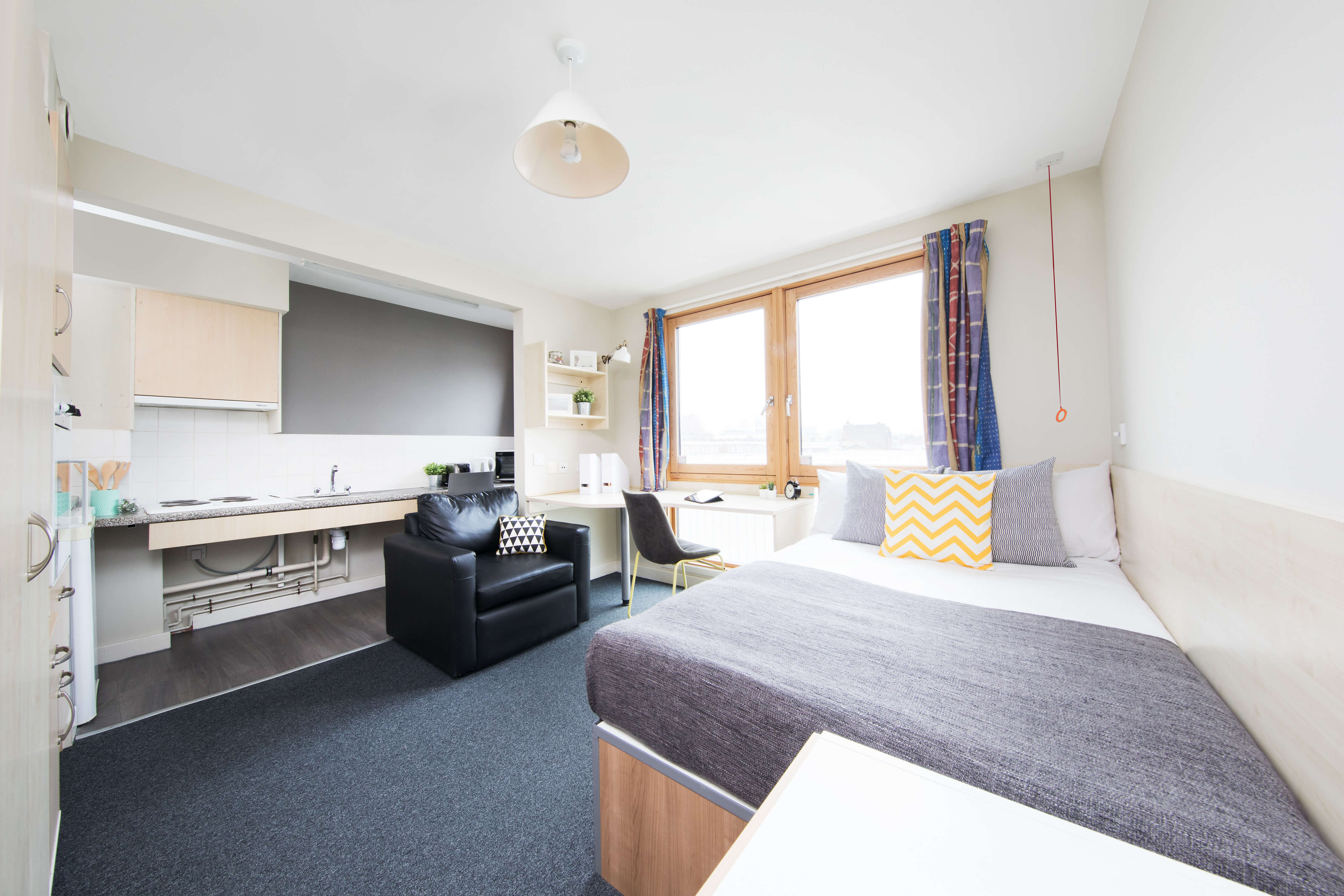 There are 232 bedrooms here, and each one has its own private bathroom. If you’d like your own kitchen too, choose one of our studios. Otherwise, choose an en-suite room and you’ll share your kitchen and lounge with flatmates.