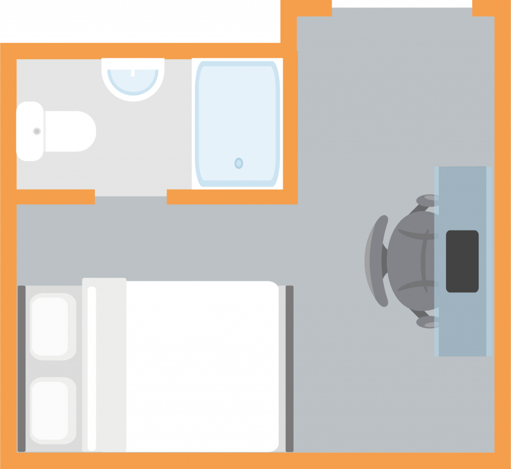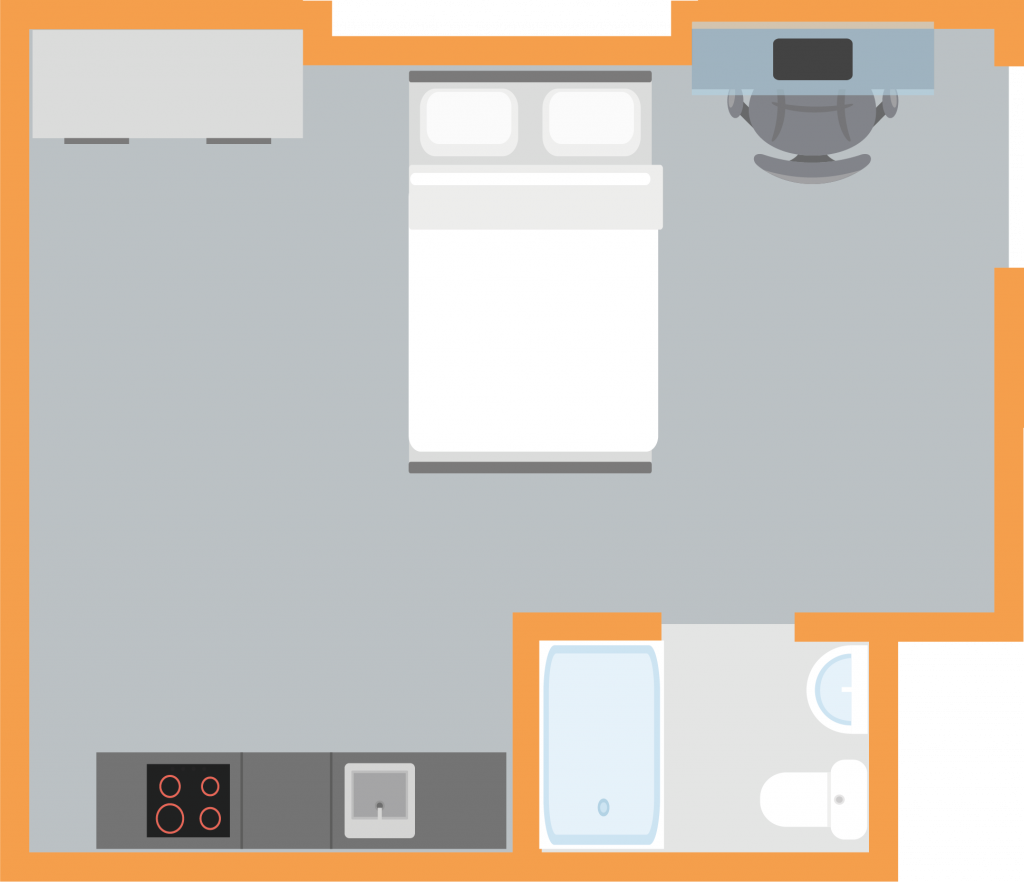 The ever popular Bronze Studio measures around 15-16.5m² and comes with everything you need for a comfortable place to call home. This studio comes complete with a modern kitchenette and en-suite bathroom.