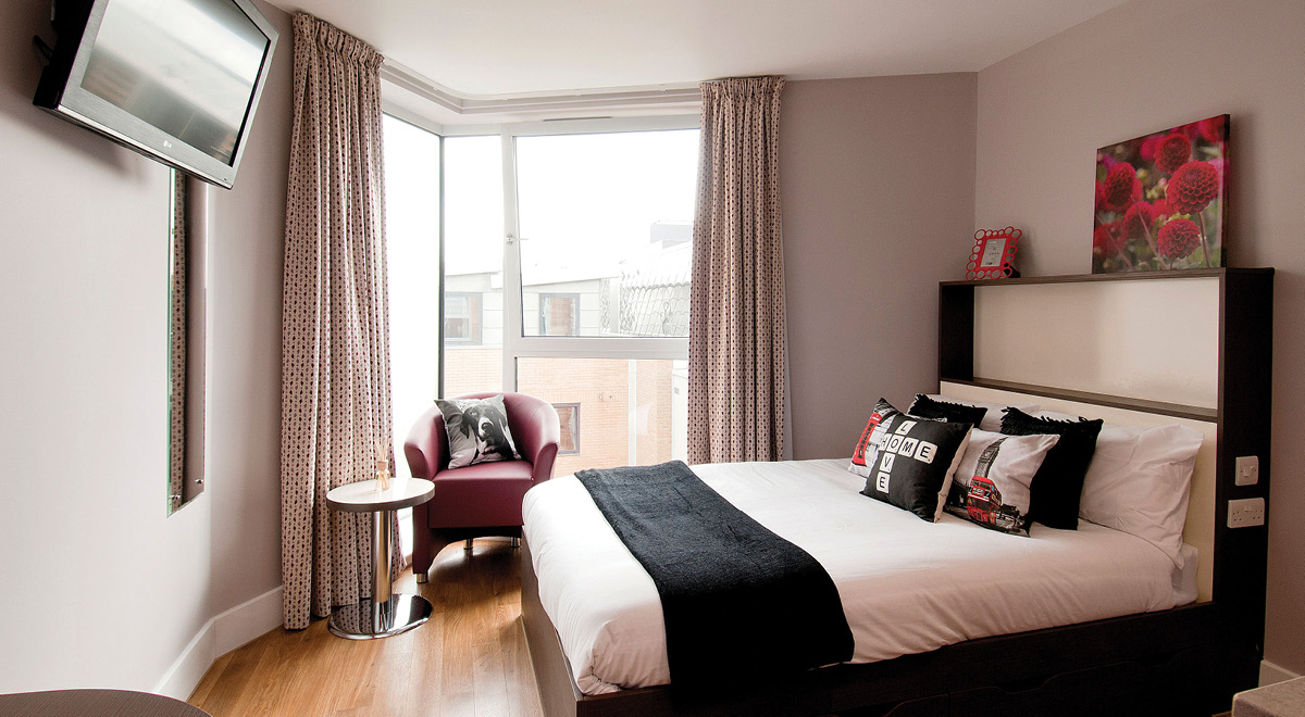Fancy living with your mate? (Multi-Sex) Our amazing Gold Twin Studio will let you do just that! With comfy beds and designated study areas, you’ll be sharing the space with a fellow student—not just a friend, but a new roommate! There’s plenty of space with a wardrobe and a relaxing dining space, as well as a kitchen area with a TV.
