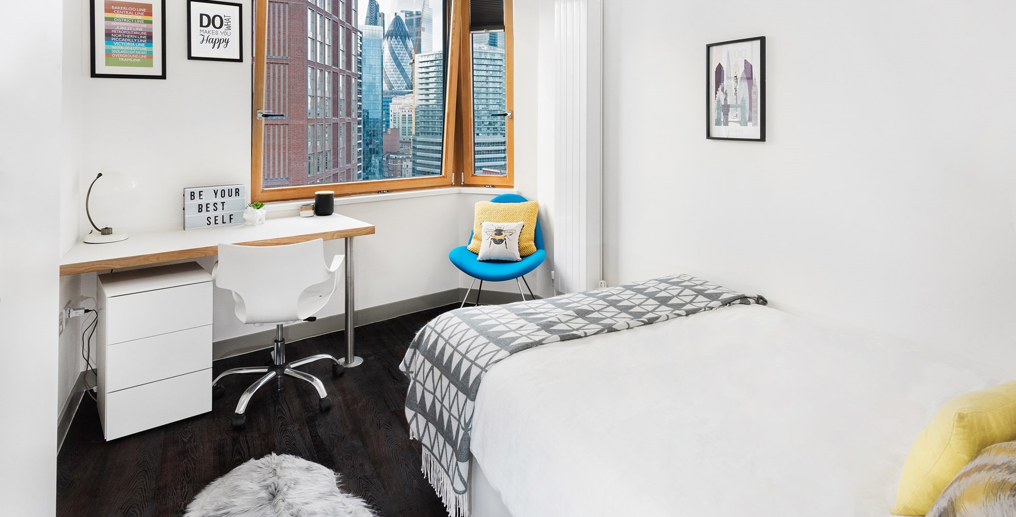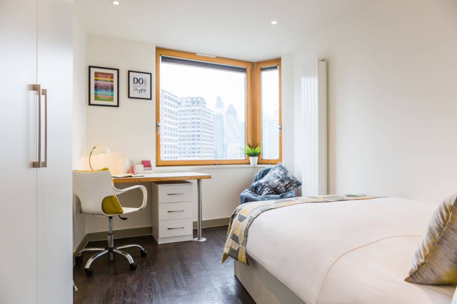 The rooms at Aldgate Residence student accommodation are fully furnished, so you can move in right away. There is also plenty of space for your personal belongings at Aldgate Residence London, which will help you quickly feel at home. You have a little more privacy because each room at Aldgate Residence has its own private en-suite bathroom.