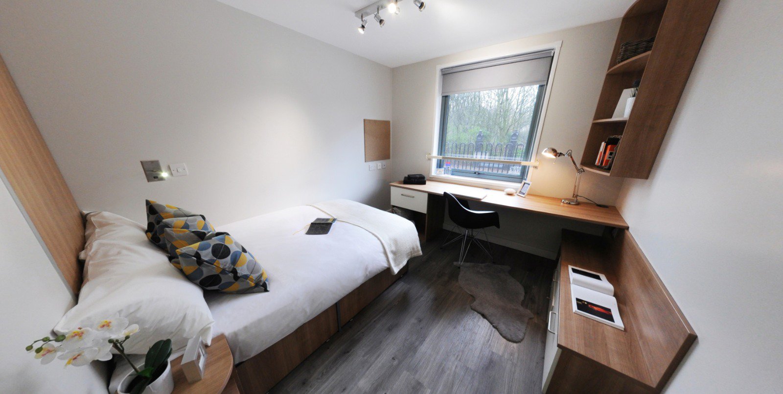 Our Silver En Suite rooms come with three-quarter beds, en suite bathrooms, study area, storage space, free unlimited broadband and share a living area and kitchen with small groups of fellow residents. Rooms are 12 sqm in size and the “plus” rooms have all been fully refurbished.