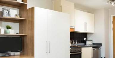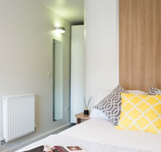 Chapter South Bank Residence student accommodation also has an en suite bathroom. Apartments come with a communal kitchen and en-suite bathroom. An apartment often has a bed, a desk, a chair, and storage space in each room at the South Bank Residence London.