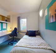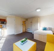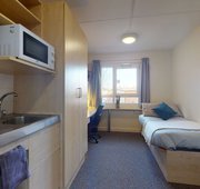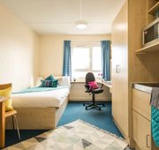 This style of room has been designed to give you the very best student experience. Each apartment comes equipped with a comfy double bed, large en-suite bathroom and a studfy area to help you finish off assignments or projects. When its mealtime, use your very own kitchenette with everything you’ll need like a fridge, hob and microwave oven.