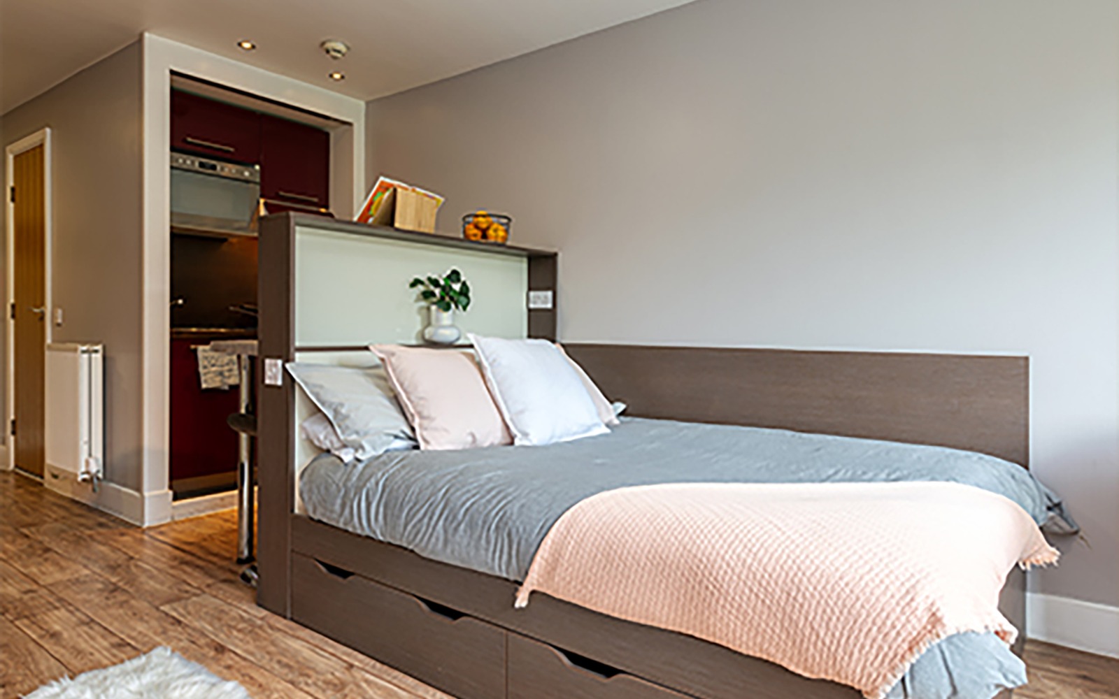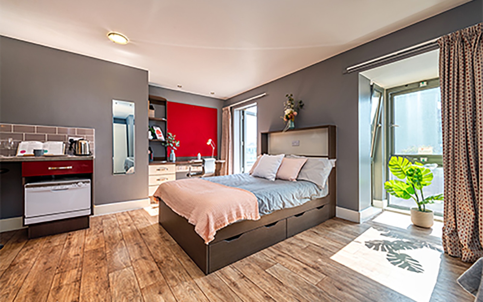 Each Standard Studio comes with an en-suite bathroom, small double bed with under-bed storage space and large wardrobe for all of your hoodies and clothing. When you’re not studying hard on campus you can head back to the more relaxed surroundings of your studio room with its study desk and chair; or relax in the comfort of your own living/kitchen area with a home-cooked meal. Book your room in London today!