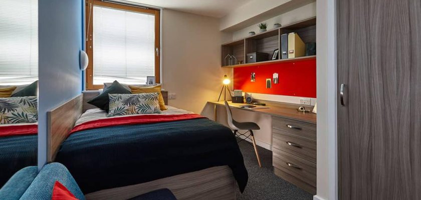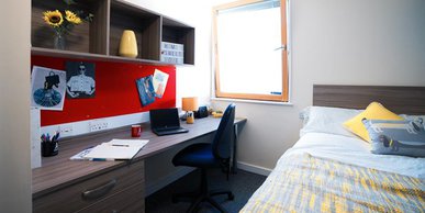 Our rooms here are great value, with a double bed, private en-suite bathroom, double wardrobe and study space too.