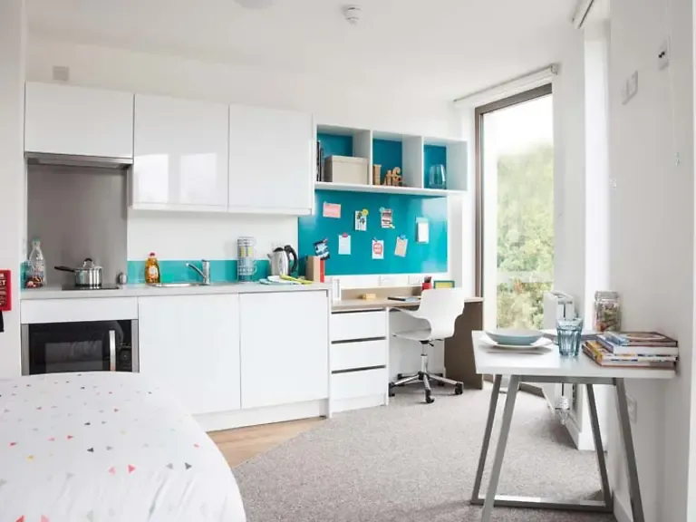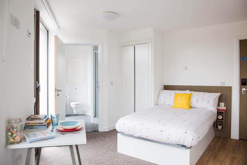 Located on upper ground floor and up. Room sizes can vary from 23.8m2 to 23.9m2. Private kitchen facilities Small double bed with under bed storage Wardrobe En-suite shower room Plenty of storage Study desk and chair