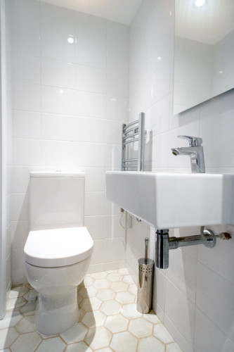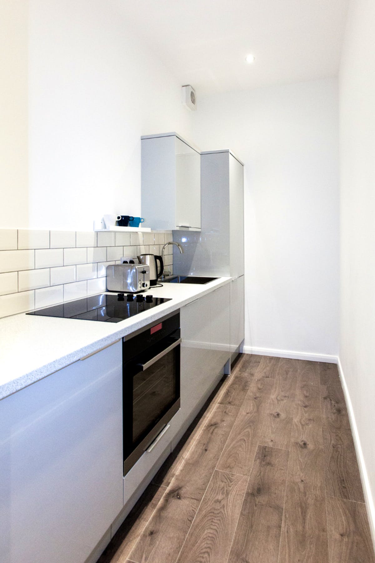 Our premium en-suite rooms with single/double beds in mezzanine sleeping areas located in the loft, en-suite bathrooms, study area, storage space, free unlimited broadband with a shared kitchen. Rooms are between 13.5 and 16 sqm in size an fully refurbished. The kitchen is shared between 2 or 3 people in 2/3-bedroom units. Double Bed All Linen Kitchen Facilities