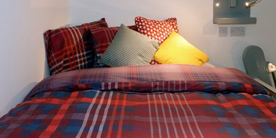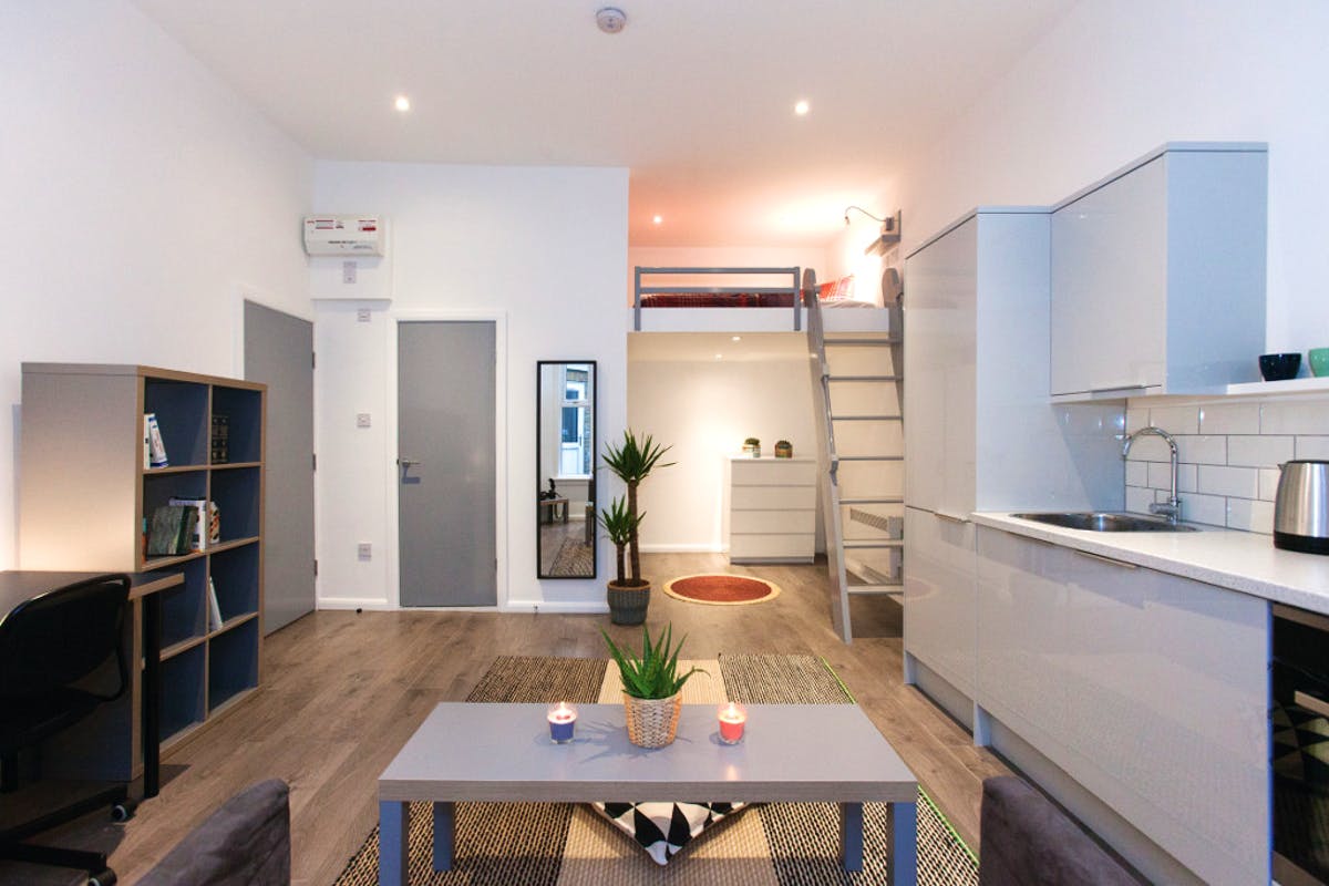 Our premium studios offer private living with en-suite bathroom, kitchen, study area, storage space, free superfast broadband and come with single/double beds in mezzanine sleeping areas. They are between 22 and 26.5 sqm in size and fully refurbished. Double Bed All Linen Kitchen Facilities