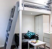 The classic studios offer private living with en-suite bathroom, kitchen, study area, storage space, free superfast Wi-Fi and come with single/double beds in mezzanine sleeping areas. They differ between 11.7 and 15.2 sqm in size and fully refurbished. Double Bed All Linen Kitchen Facilities