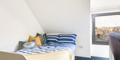 Your Bronze Studio is approximately 17sqm in size. It includes a comfortable double bed, ample storage for all your belongings, Wi-Fi enabled study space, private bathroom and a fully fitted kitchen. The studio is well equipped with all modern amenities required for an easy and comfortable stay. The apartment is completely your own, allowing you privacy and freedom. Study for your exams without any distractions, prepare your meals in the kitchen and relax in the comfort of your own room.