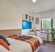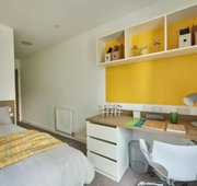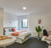 What’s in the room? - 3/4 size double bed with under bed storage - Drawers - Magnetic board - Mirror - Plenty of storage - Private en-suite shower room - Shared communal kitchen with ceramic hob, combi oven, and fridge freezer - Shelves - Study space with desk and chair - Wardrobe -- Description -- Great to share with three other flat mates / friends, there is a communal kitchen with a dining and lounge area -- Room types and layouts can vary.