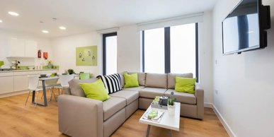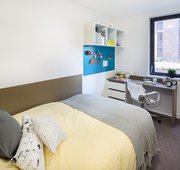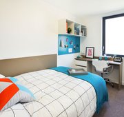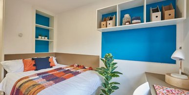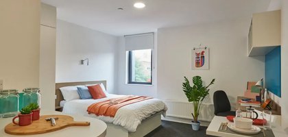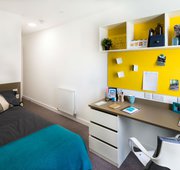 What’s in the room? - 3/4 size double bed with under bed storage - Drawers - Magnetic board - Mirror - Plenty of storage - Private en-suite shower room - Shared communal kitchen with ceramic hob, combi oven, and fridge freezer - Shelves - Study space with desk and chair - Wardrobe -- Description -- Great to share with three other flat mates / friends, there is a communal kitchen with a dining and lounge area -- Room types and layouts can vary.