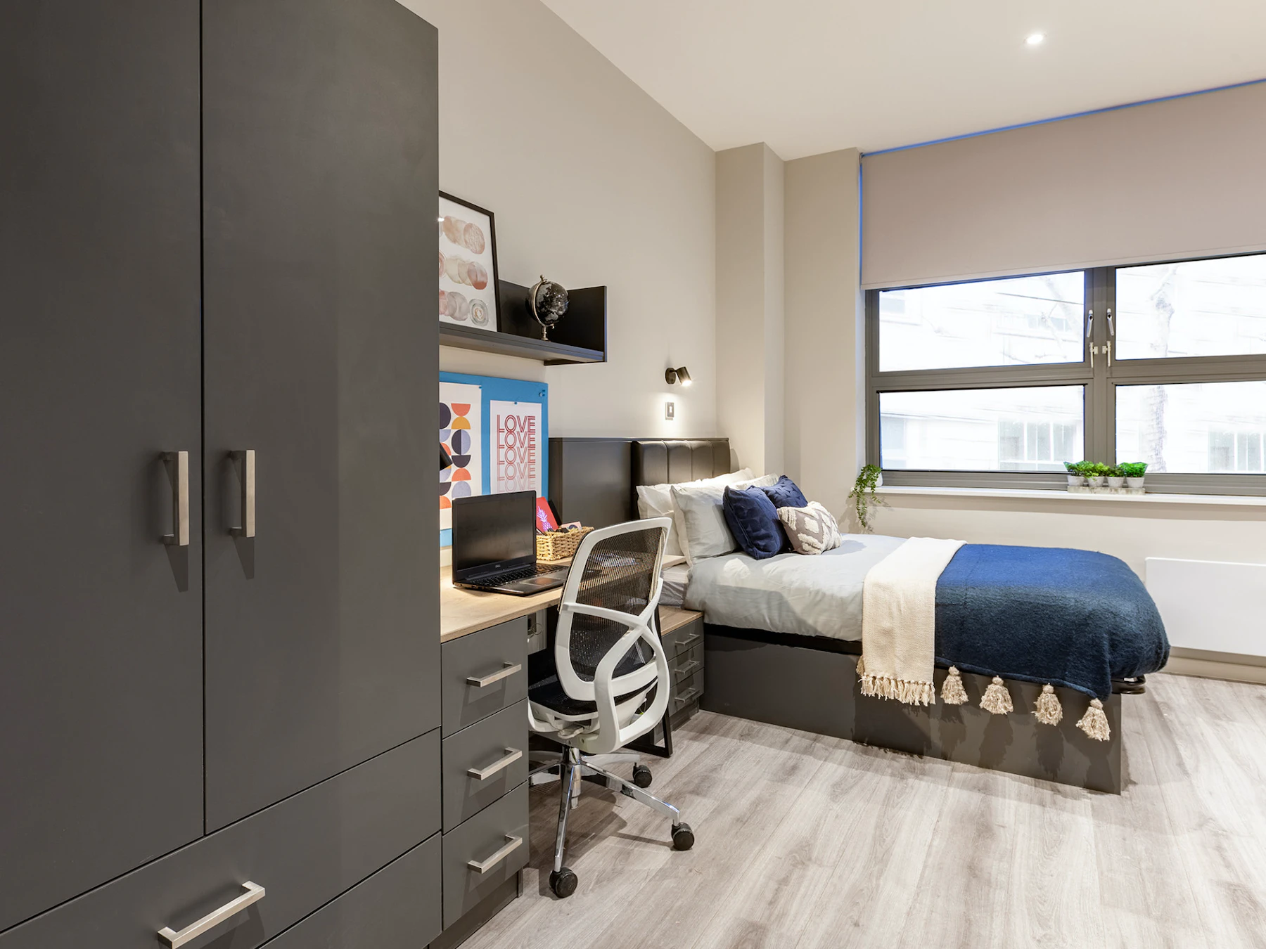 With a selection of studios and apartments with both single and double beds and round-the-clock security and CCTV, you can be sure to have a pleasant stay at Grosvenor House student accommodation. A study area, kitchen, and private bathroom with a shower, basin, and toilet are all included in each room at Grosvenor House. Are social interactions something you relish? You can catch up on your work in the lower level's study room, theatre, gym, and common area.