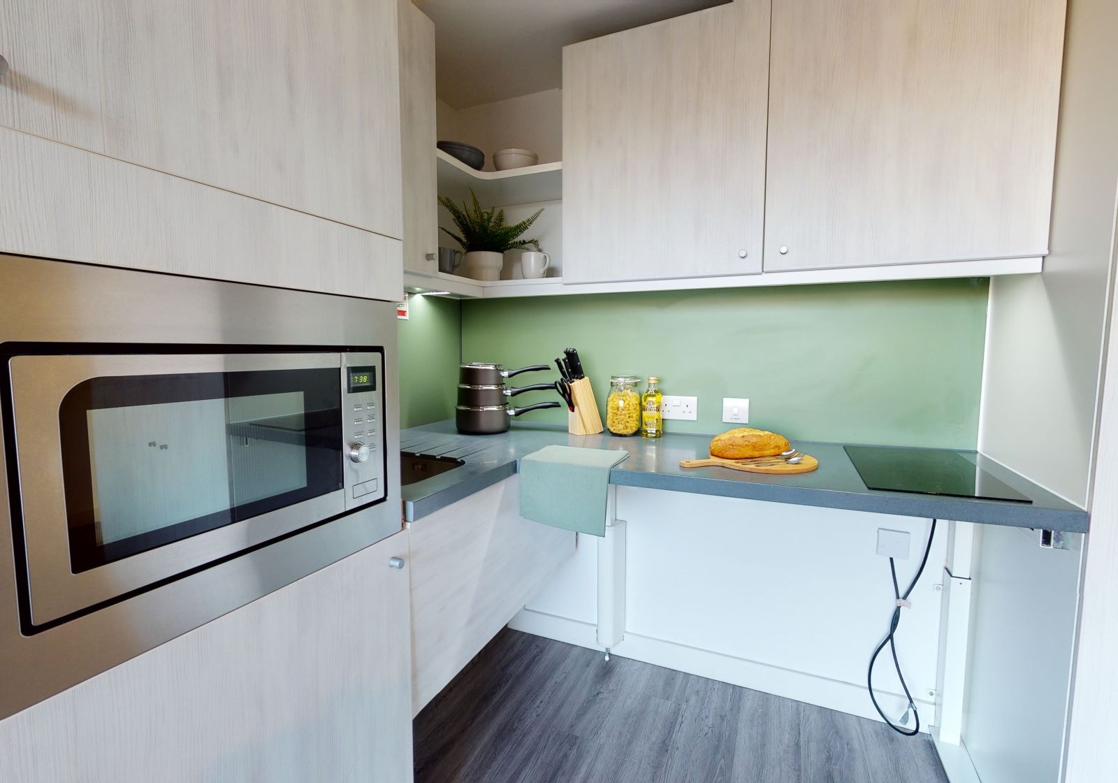 ALDG300-031125Enjoy lots of natural light and living space in this newly refurbished studio, equipped with all you need for student life. Located on the upper floors of the building. The Gold Studio Plus is located on the upper floors of the building and comes equipped with a bed, study area, storage and en suite shower room, as well as your own kitchenette with combi-oven, hob, fridge and dining area. Our onsite gym and social areas are also available for your use.