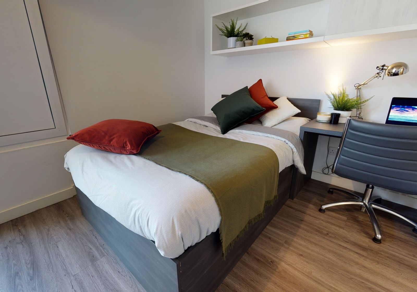 ALDG300-031125Enjoy lots of natural light and living space in this 21 sq m studio, equipped with all you need for student life. Located on the lower floors of the building. This newly refurbished studio is located on the lower floors of the building and comes equipped with a bed, study area, storage and en suite shower room, as well as your own kitchenette with combi-oven, hob, fridge and dining area. Our onsite gym and social areas are also available for your use.