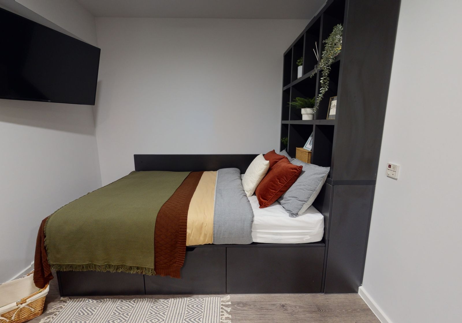Your room comes with small double bed, study desk and chair and underfloor heating, and you get the best of communal living with a large shared kitchen and living space with up to 6 others in your flat. There are only four of these extra-large rooms available so they always go quickly.