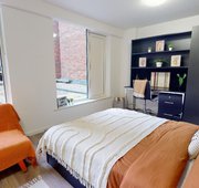 CITY300-031125On floors 1-3, these apartments offer maximum space and are ideal for independent city living, with all the essential features. Measuring 31 sq m, these spacious apartments have two double bedrooms, both with a small double bed, wardrobe and study area. There is a shared shower room, a comfortable living area with TV and a well-equipped kitchen with breakfast bar.