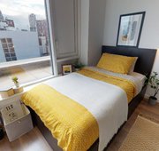 CITY300-031125Located on floors 6-11 and with a massive 33 sq m floor plan, these bright, spacious apartments give you a taste of the high life. Perfect for a couple sharing or anyone wanting maximum space, these excellent apartments come with small double bed, wardrobe, living area with seating, sofa, study area, en suite shower room, private kitchen and underfloor heating. The higher location gives you more peace and quiet and views over London, and you also get use of the cinema and social spaces in the building.