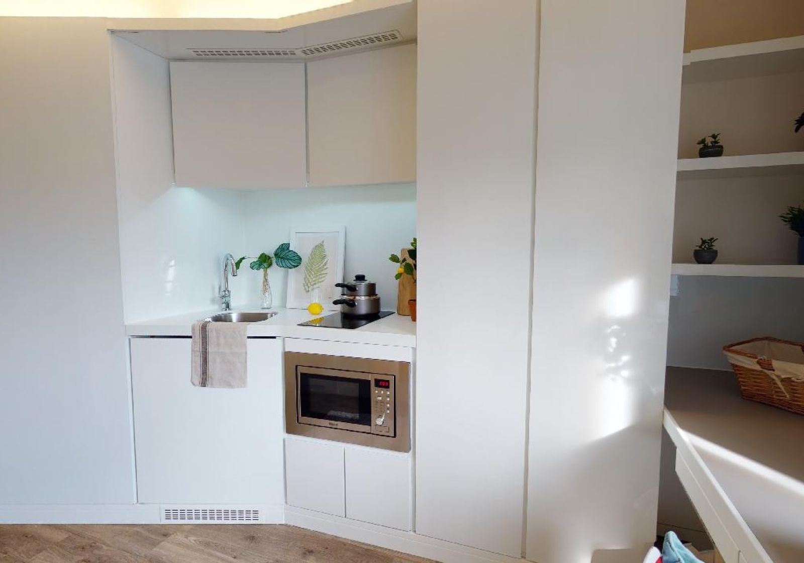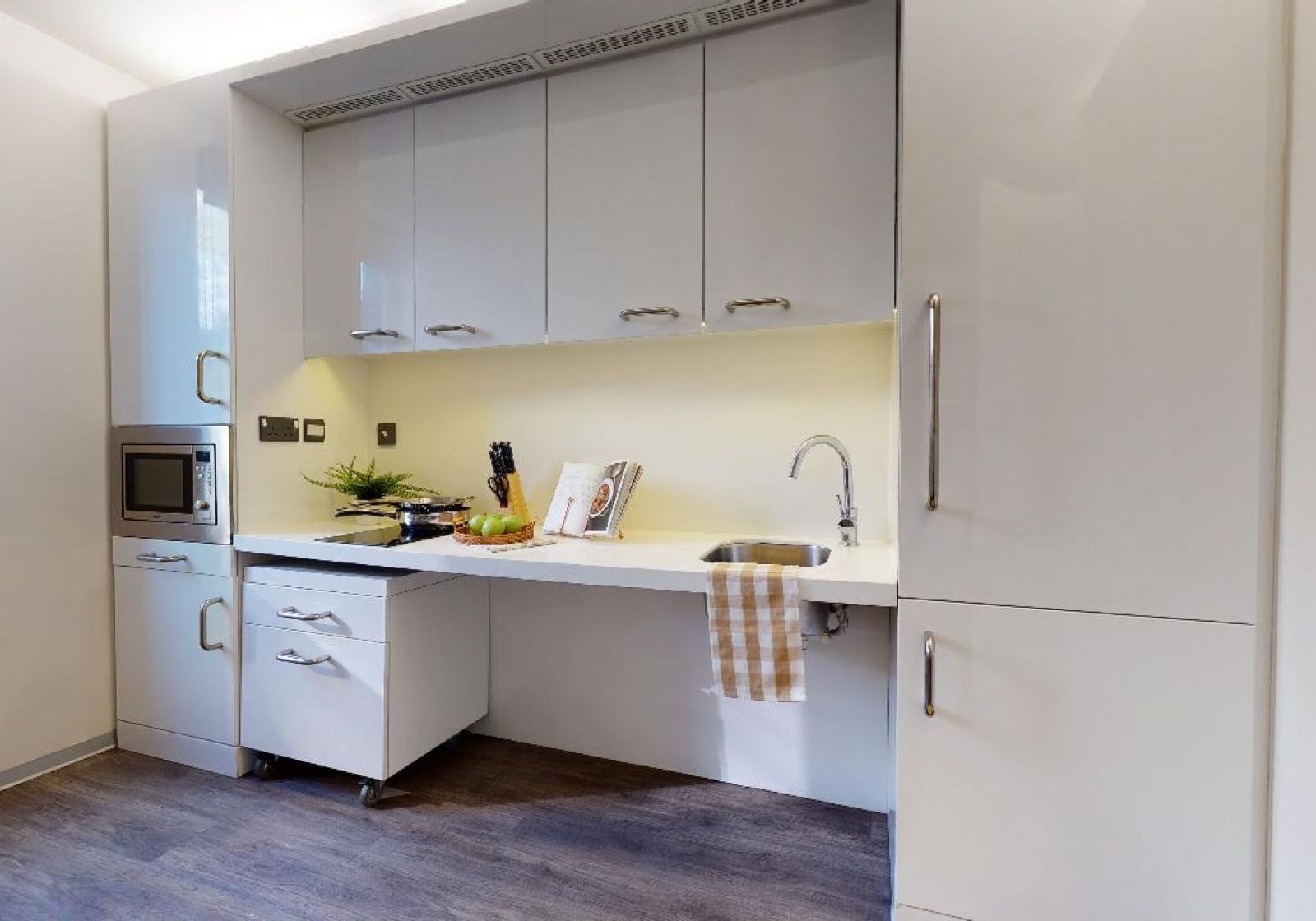 Enjoy maximum space in our largest studios which come with a full range of features. Located on floors 4-6,The Platinum Studio Plus offers plenty of living space, equipped with a bed, study area, lots of storage and an en suite shower room. You'll have your own kitchenette with combi-oven, hob, fridge and breakfast bar dining area, and the use of onsite facilities including the gym, lounge and study spaces.