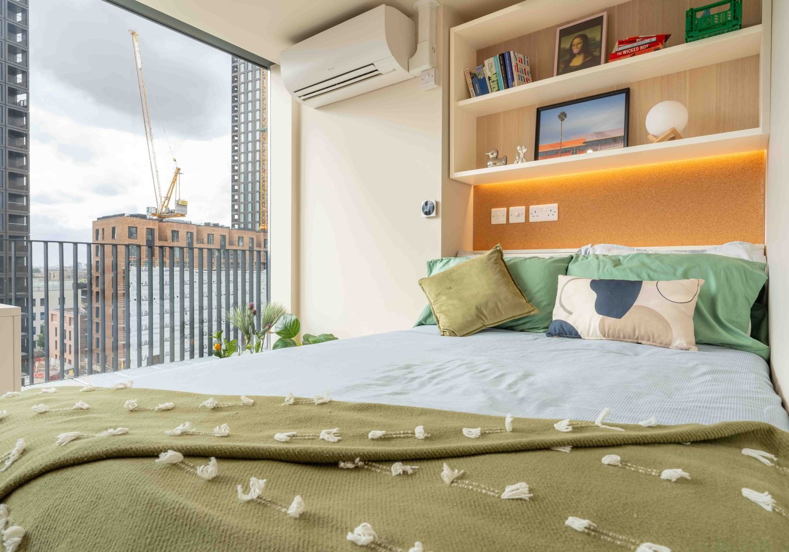 FLIN300-041124Our biggest studios offer everything you need in 23 sq m, including a kitchenette and lots of storage. Dual occupancy is available in these rooms. Located on the lower floors of the building. This studio comes equipped with a bed, study area, storage and en suite shower room, as well as your own kitchenette with combi-oven, hob, fridge and dining area. Our onsite gym and social areas are also available for your use.