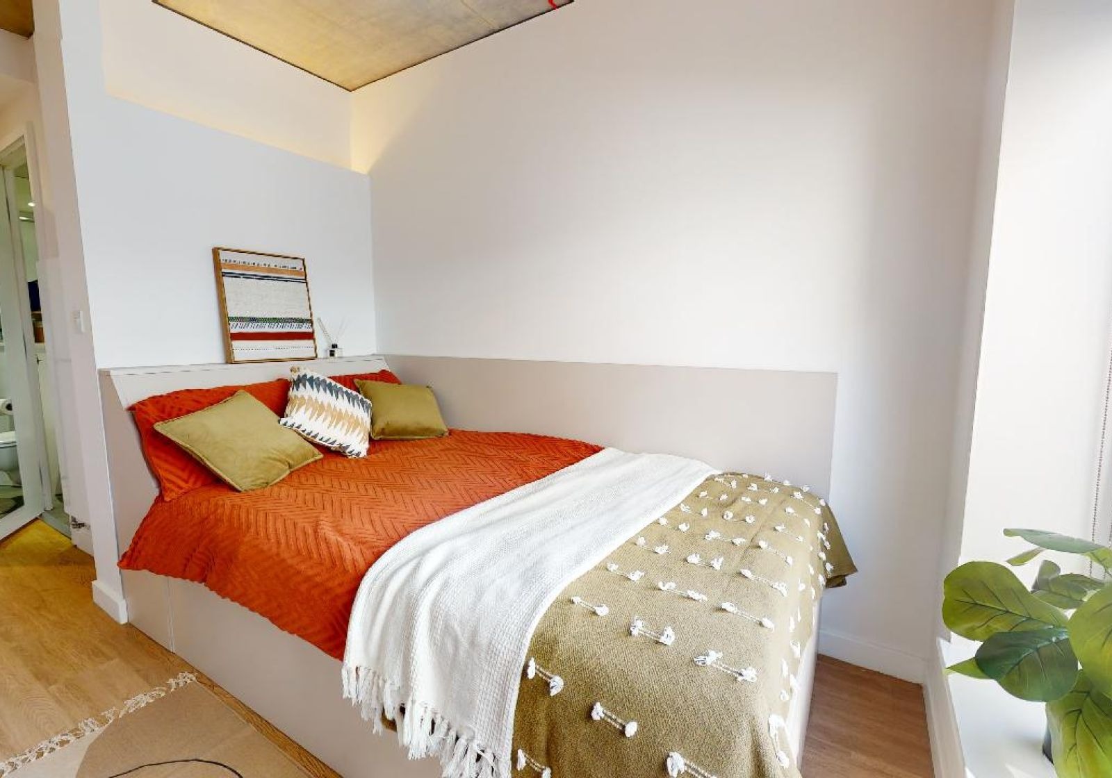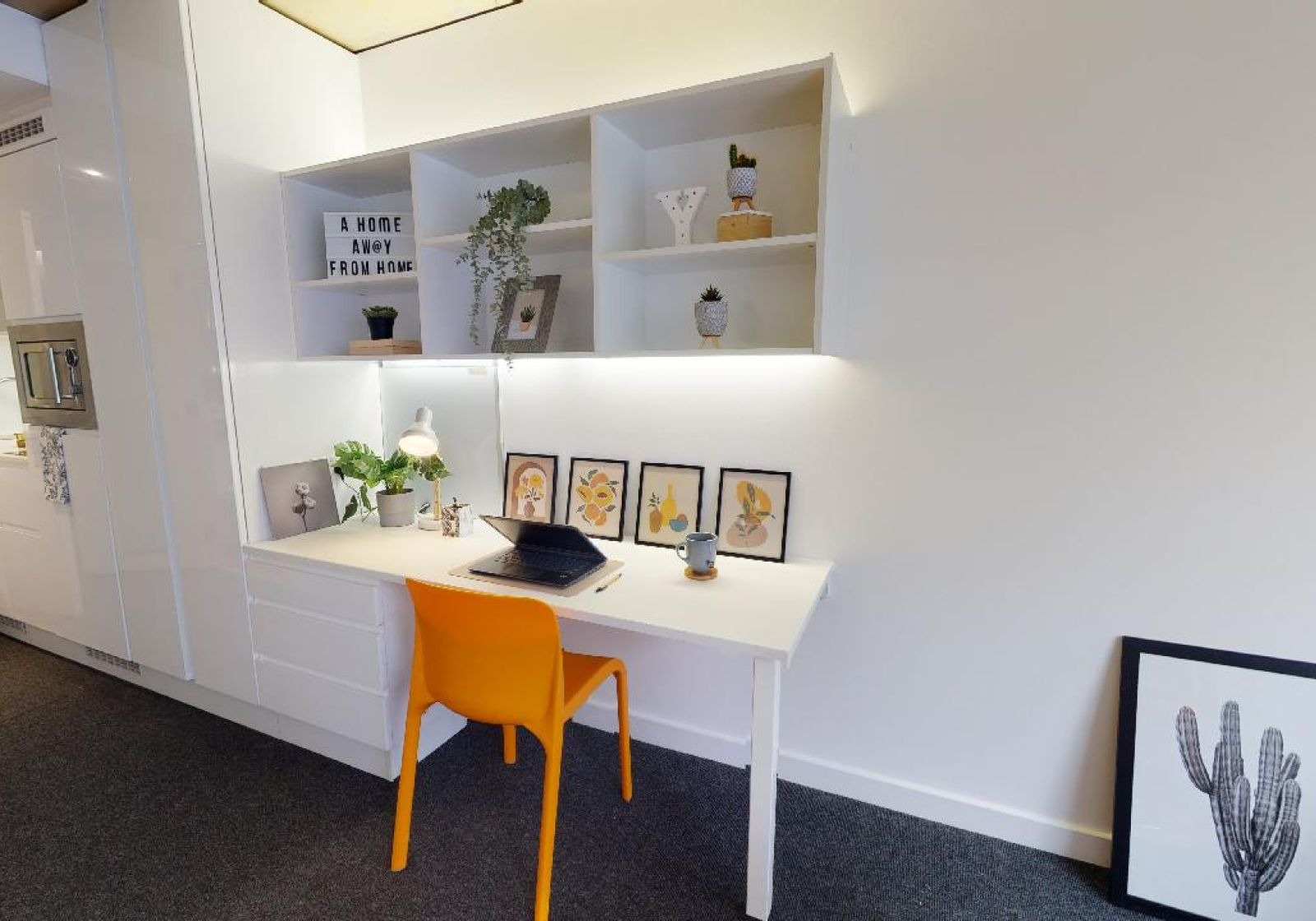 FLIN300-031125Our biggest studios offer everything you need in 23 sq m, including a kitchenette and lots of storage. Dual occupancy is available in these rooms. Located on the upper floors of the building. This newly refurbished studio comes equipped with a bed, study area, storage and en suite shower room, as well as your own kitchenette with combi-oven, hob, fridge and dining area. Our onsite gym and social areas are also available for your use.