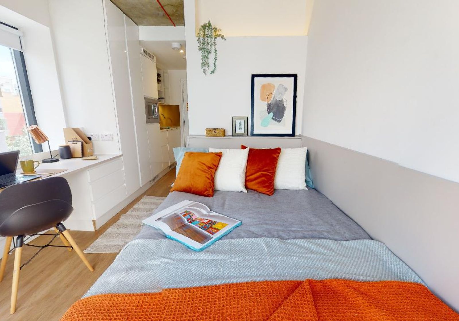 FLIN300-031125Enjoy lots of natural light and living space in this 21 sq m studio, equipped with all you need for student life. Located on the lower floors of the building. This newly refurbished studio is located on the lower floors of the building and comes equipped with a bed, study area, storage and en suite shower room, as well as your own kitchenette with combi-oven, hob, fridge and dining area. Our onsite gym and social areas are also available for your use.