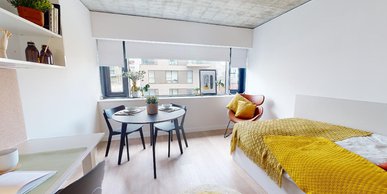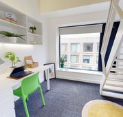 FLIN300-031125Enjoy lots of natural light and living space in this newly refurbished studio, equipped with all you need for student life. Located on the upper floors of the building. The Gold Studio Plus is located on the upper floors of the building and comes equipped with a bed, study area, storage and en suite shower room, as well as your own kitchenette with combi-oven, hob, fridge and dining area. Our onsite gym and social areas are also available for your use.