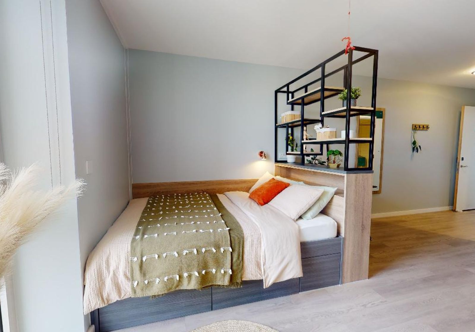 HAMM300-031125Offering over a third more space than our biggest standard Studios, these rooms on the upper floors give more peace and quiet and great views. Located on floors 6 to 8, Silver Studio Plus Large rooms give you a huge 27 sq m of space to live, relax, cook, study and entertain. They come with a double bed, underfloor heating, wardrobe, study area, seating area with modern sofa and coffee table, a dining area, private kitchenette and an en suite shower room. This room is accessible.